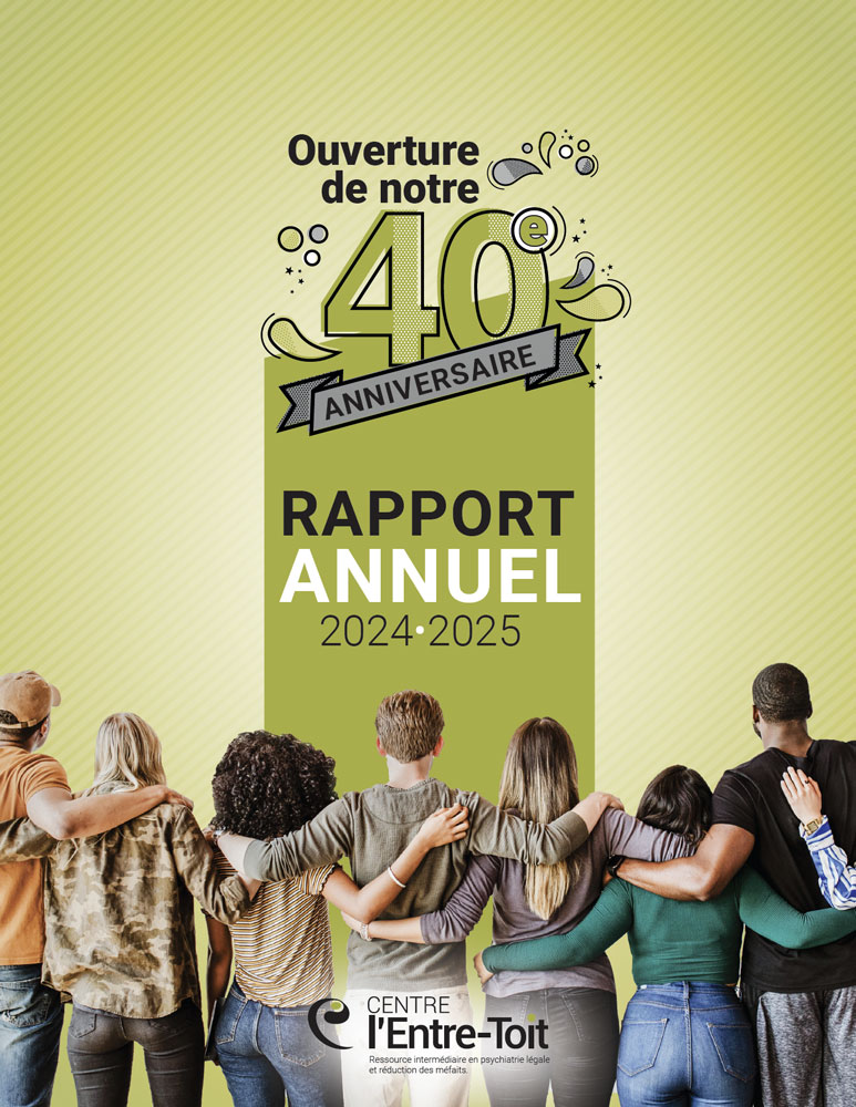 Le Centre l’Entre-Toit célèbre cette année son 40e anniversaire, marquant quatre décennies d’engagement auprès d’une clientèle vivant avec des enjeux de santé mentale, des démêlés avec la justice ou de toxicomanie. Depuis sa fondation, notre mission demeure inchangée : offrir des milieux de vie sécurisants, humains et structurés, favorisant la stabilisation et la réinsertion sociale des personnes que nous accueillons.
